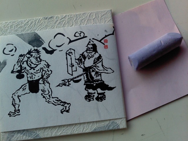 かわいらしい女の子が これ、って 例の美しい色のチョークを差し出して、ニコッとね。